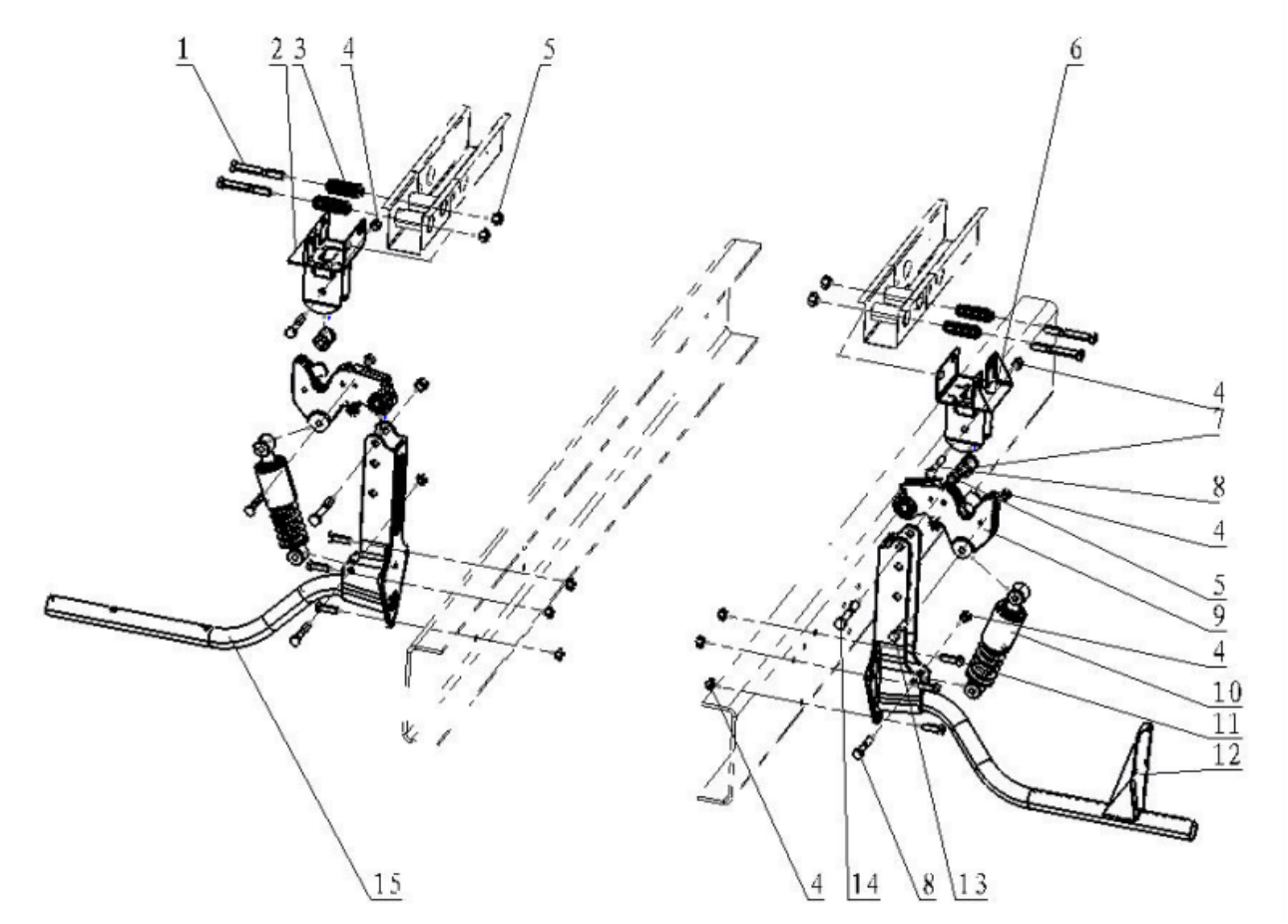 | 12 | DZ13221440080 | Rear suspension right bracket assembly | 1 | 850 frame, G cab | |||||||||||